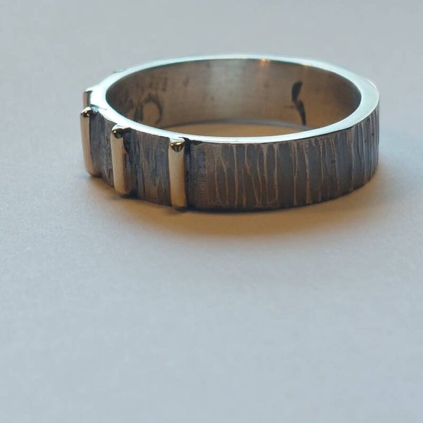 Zilveren ring met gouden accenten.