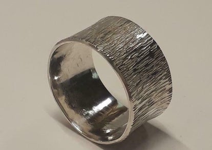 Zilveren ring met handgeslagen motief.
